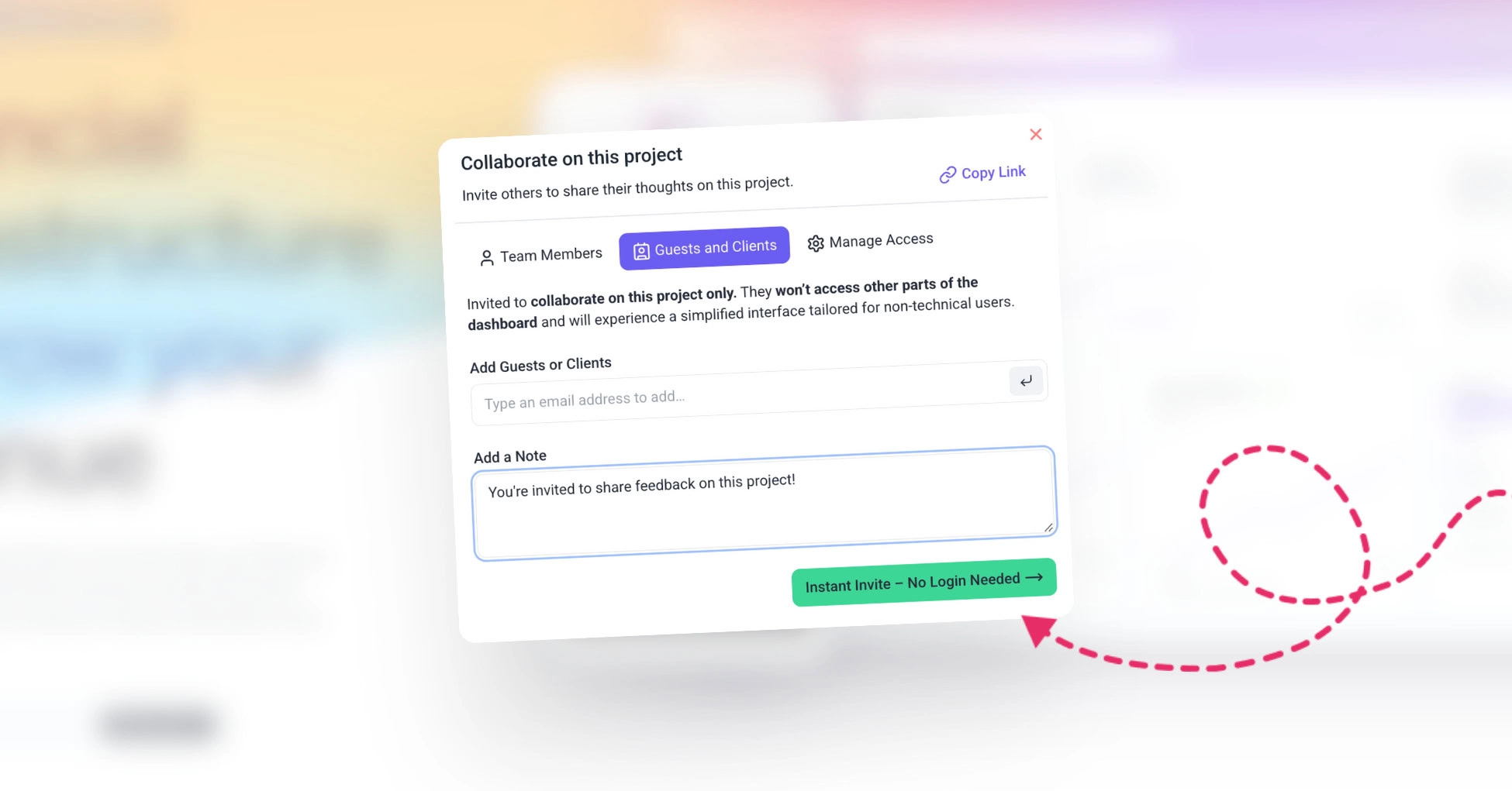 Learn how to invite clients directly from the dashboard, where project management begins.