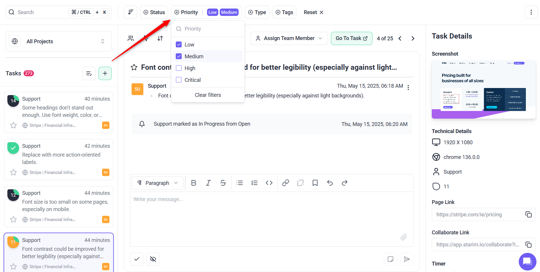 Efficiently manage client feedback with Atarim’s filtering and task management tools.