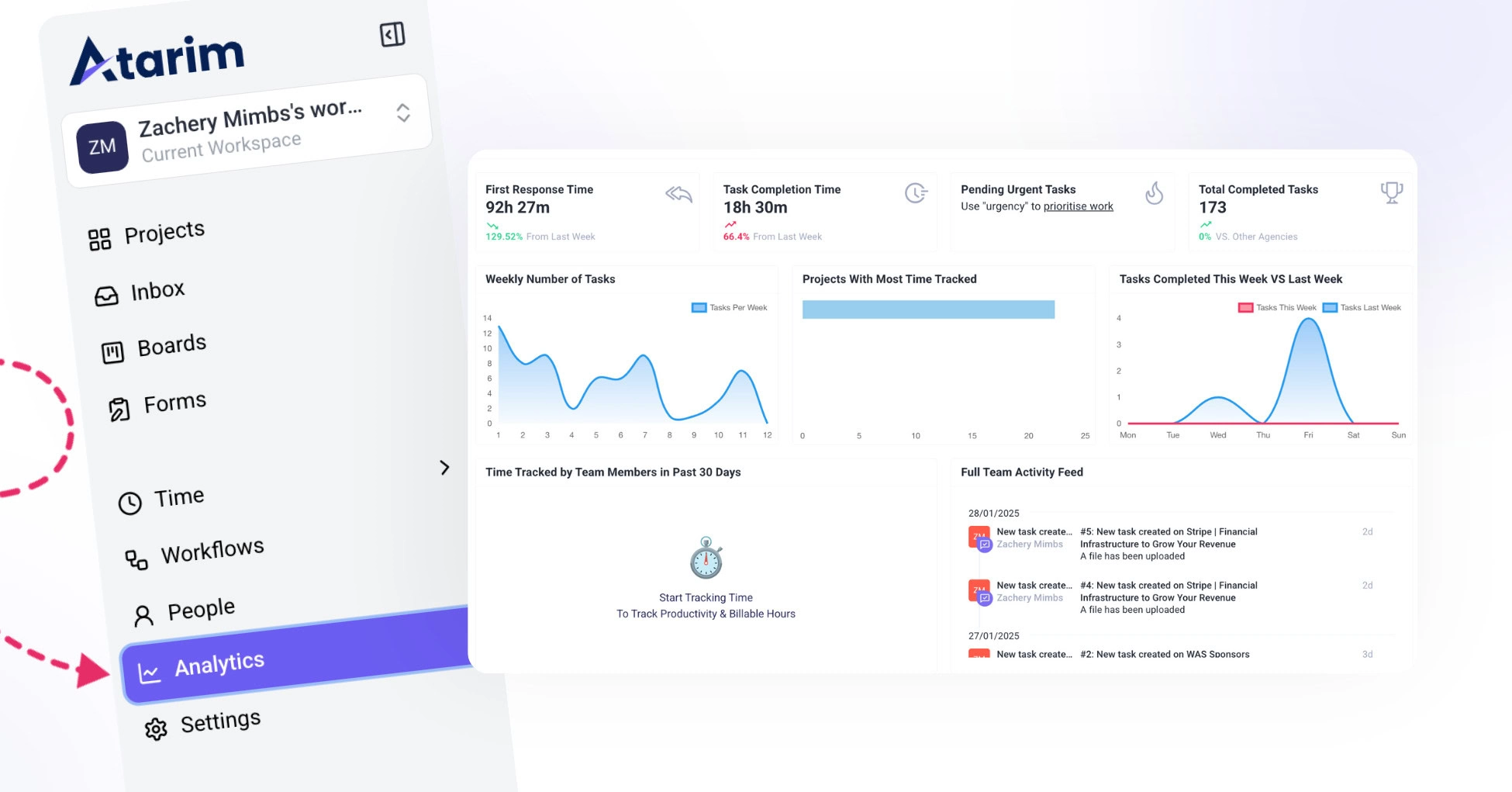 Gain actionable insights into team performance and project progress with Atarim's Analytics and Activity Feed.