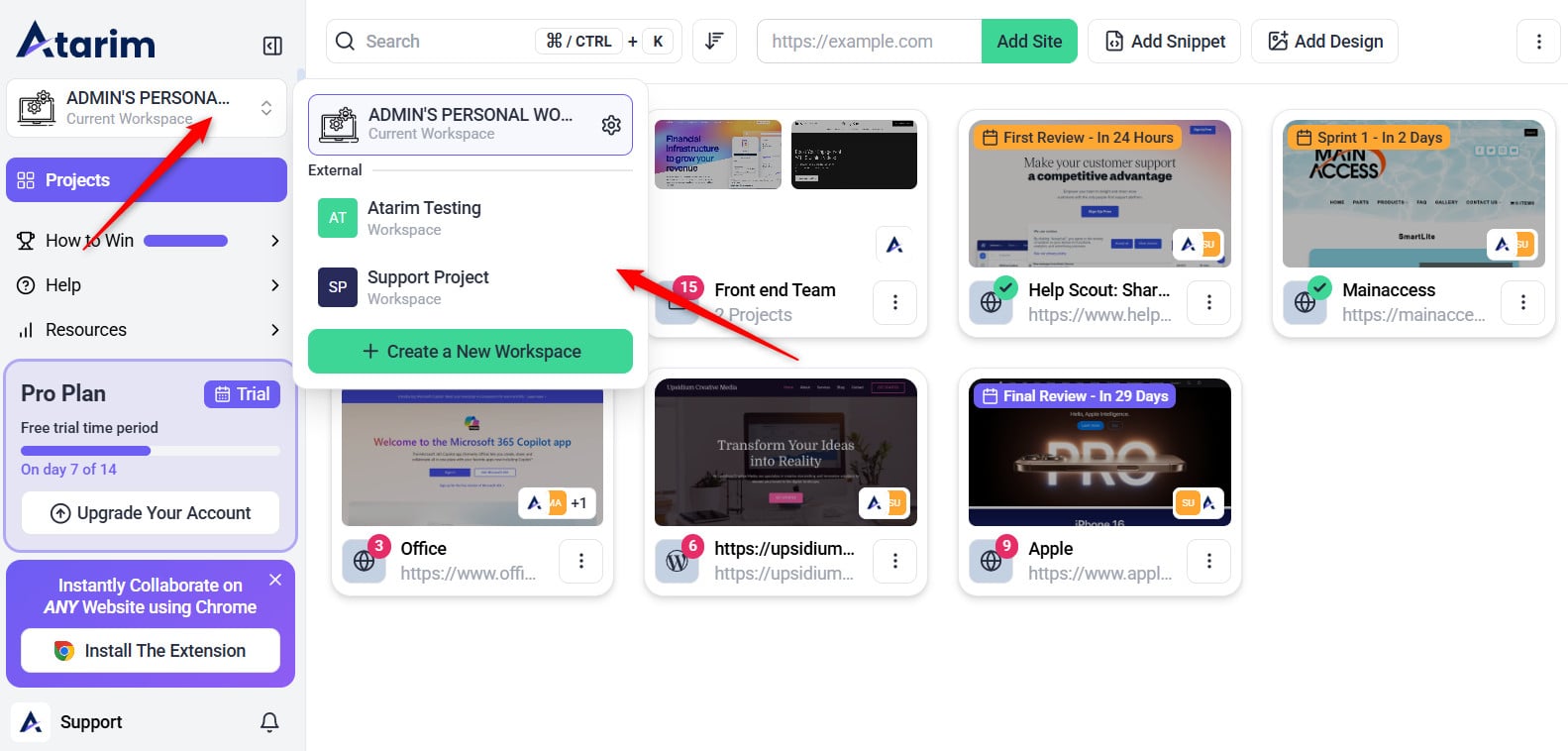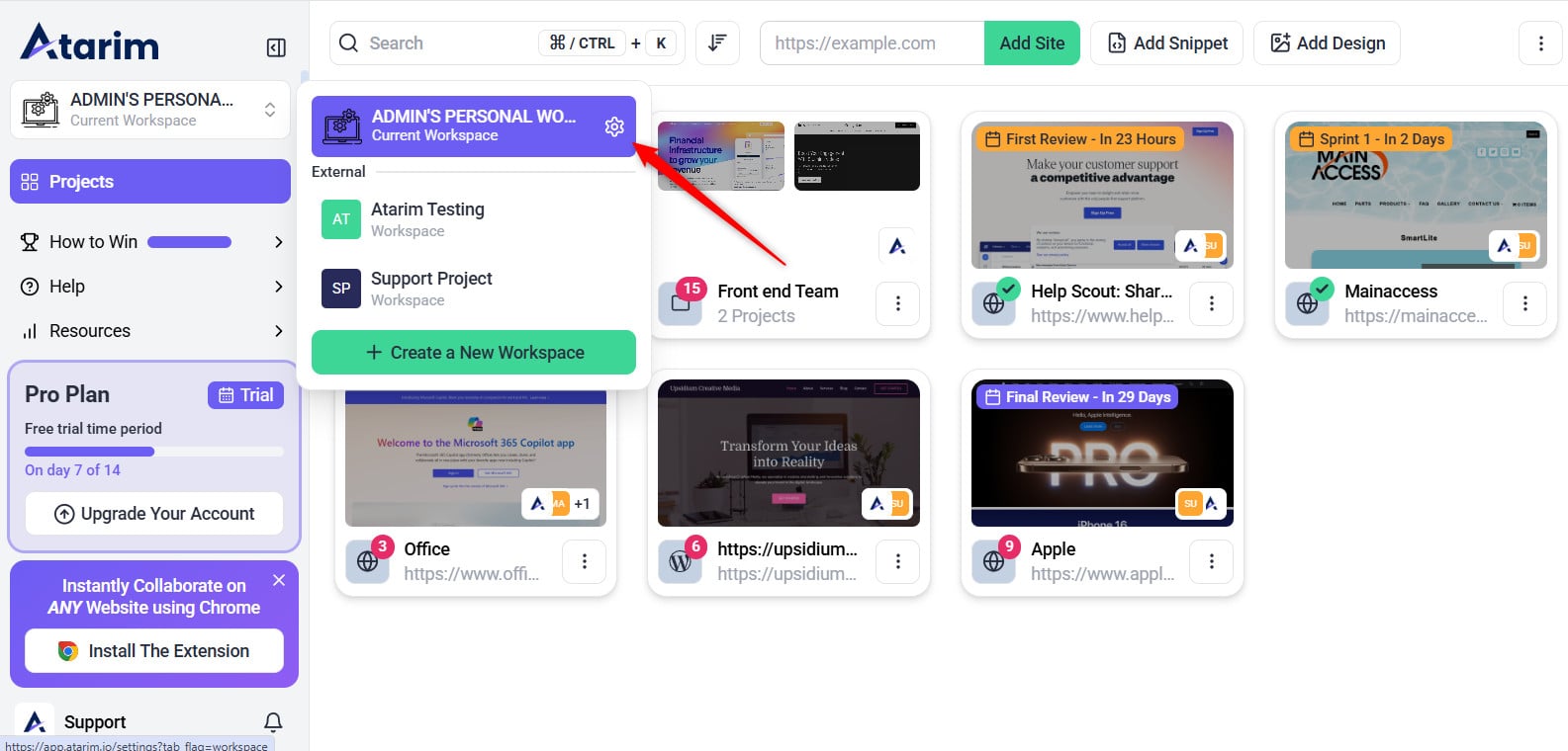 The first step to renaming your workspace is finding where it is listed in your Atarim account.