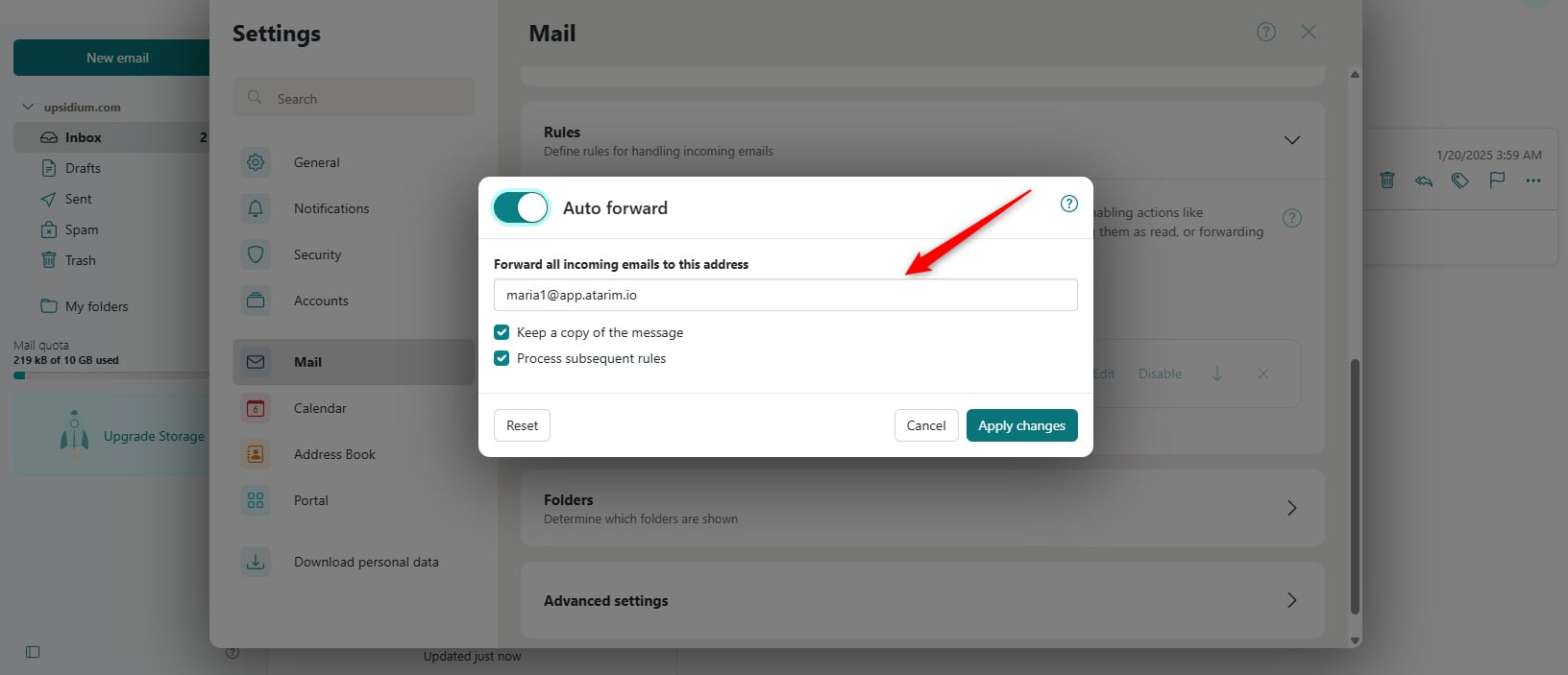 2. Add your Atarim forwarding address (provided in the settings).