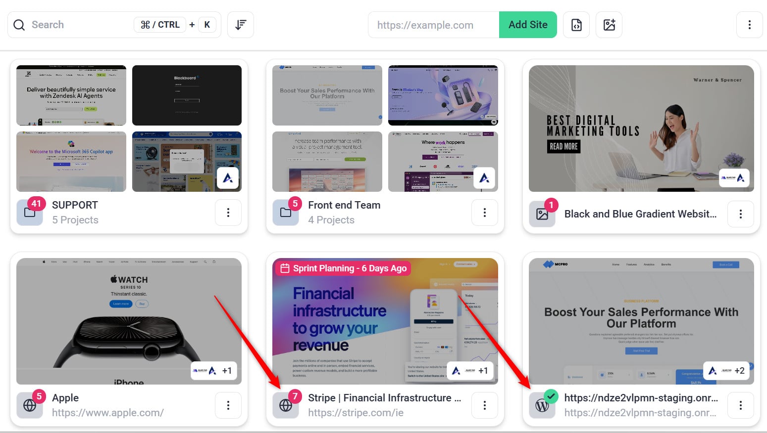 Note: If a project is added via URL, it will display a (World icon). For WordPress Plugin projects, it will show (WordPress icon).