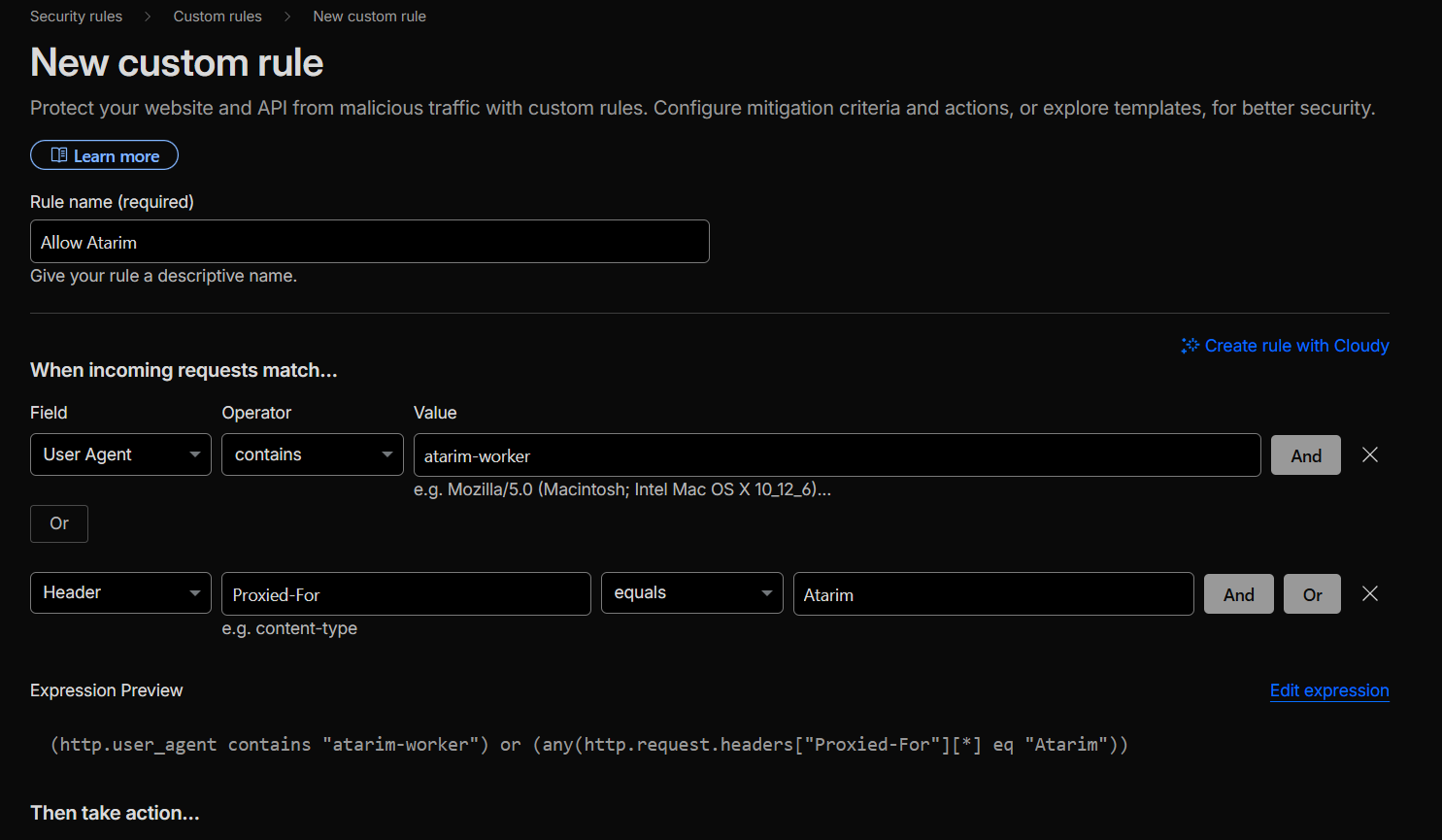 Go to: Security → WAF → Custom Rules → Create Rule