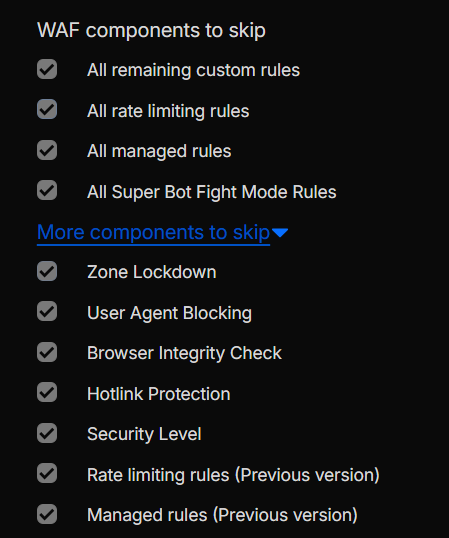 List of Rules That Can Be Skipped (via “More Components to Skip”)