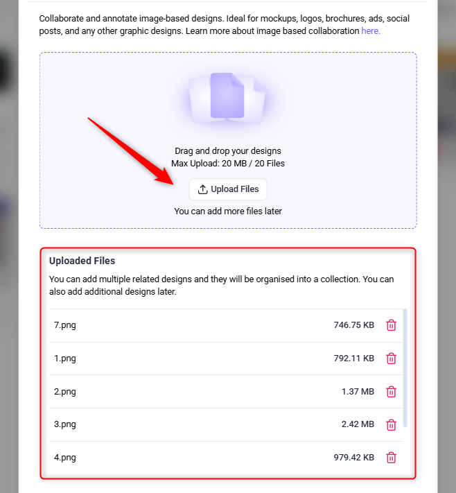 Note: You can upload up to 20 files at once and continue adding more later.