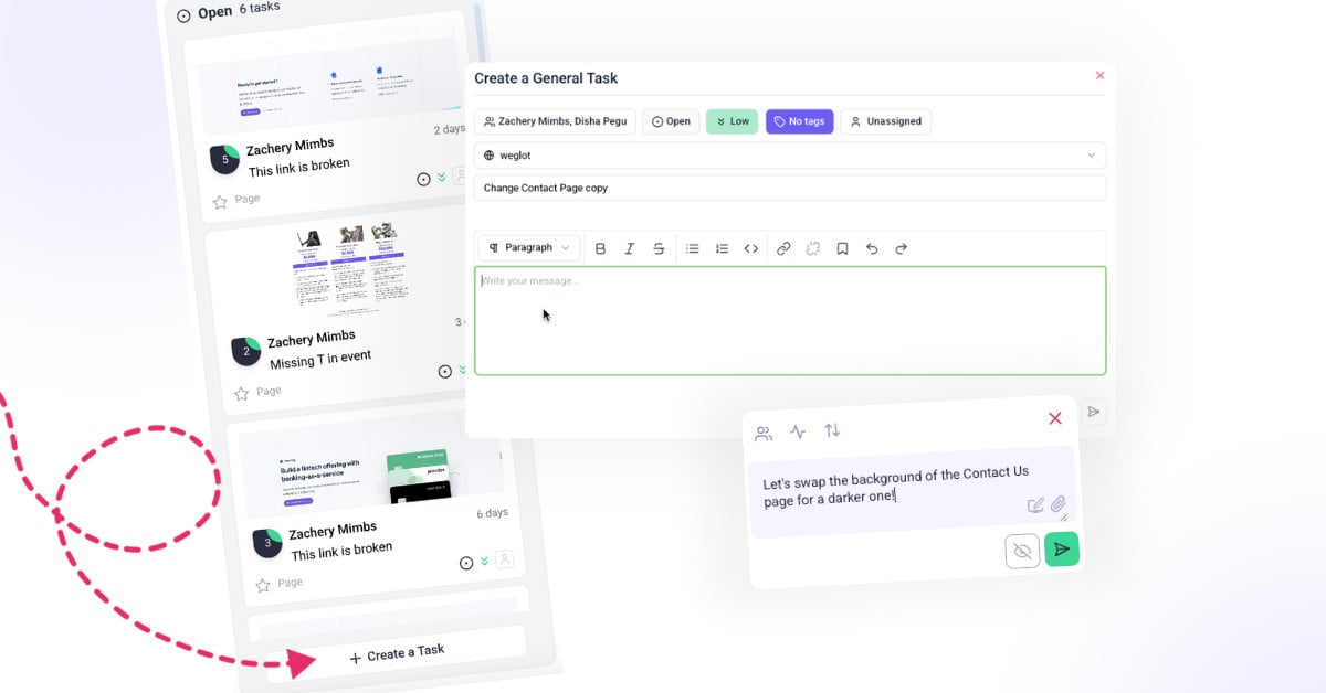 Atarim makes task creation clear, fast, and contextual by combining visual feedback with AI-powered collaboration. Teams can create tasks directly on websites or designs, ensuring feedback is always tied to the exact area being discussed and supported by automatic visual context.