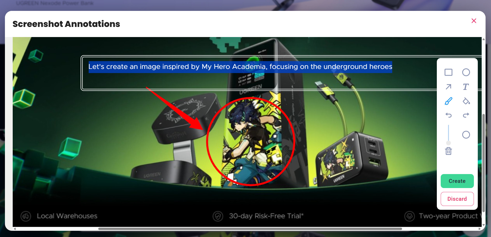 • Text: Add detailed notes directly on the screenshot.