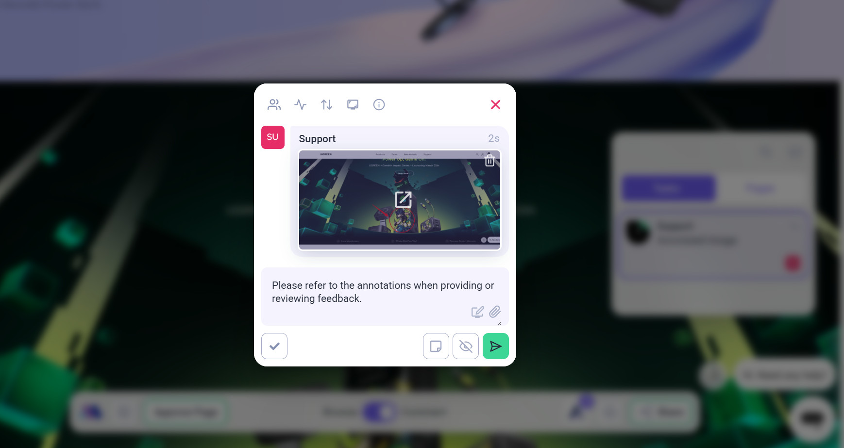 • Precise Feedback: Annotate directly on webpages or designs.