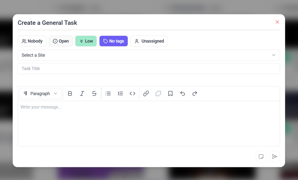 Tip: Use clear and descriptive titles, such as “Update homepage hero section” or “Fix mobile menu alignment,” to improve task visibility and communication.
