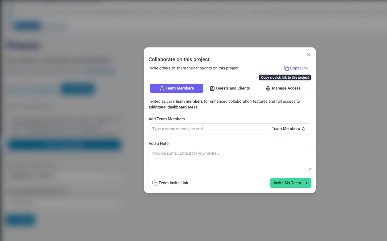 Tip: Use this when onboarding clients to quickly give them access. Internal tasks and AI feedback remain hidden from clients by default.