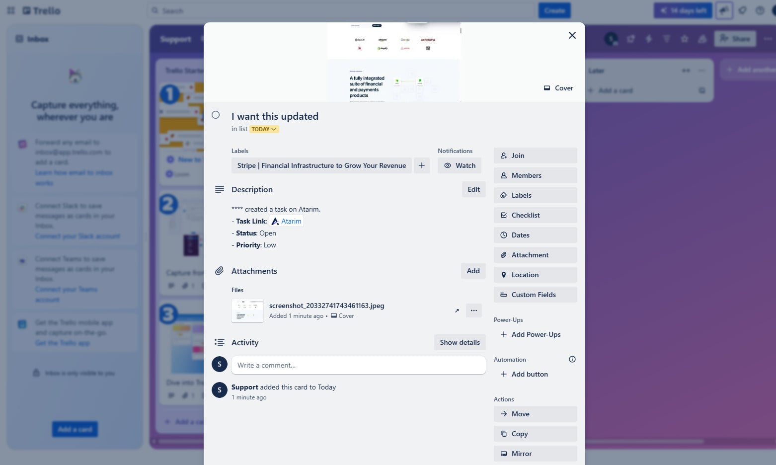 Verify the setup by creating a task in Atarim and checking its sync to Trello.