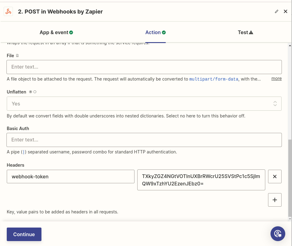 Note: The exact steps will vary from tool to tool, but on Zapier, you need to add key value pairs separately.