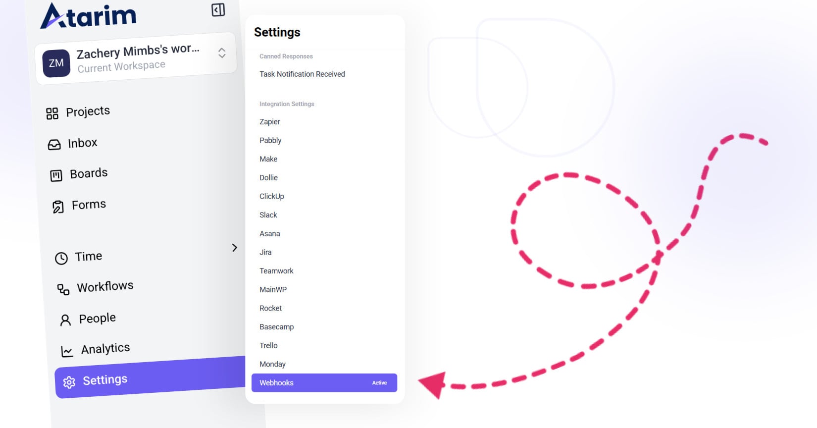 At the heart of an efficient workflow is having the right information at the right time. Webhooks in Atarim enable real-time data transfer between Atarim and external tools like Zapier, Make.com, Asana, Basecamp, and more.