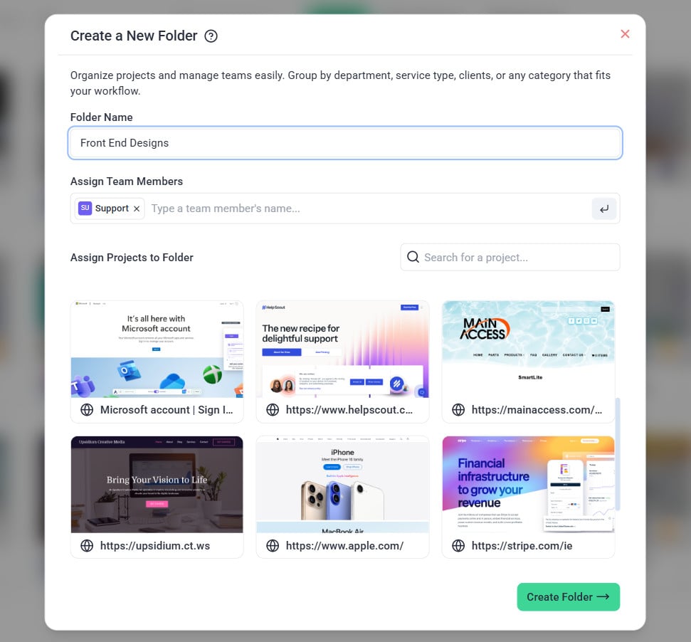 4. Efficient Access Management: Assign team members to folders for quick access to all contained projects.