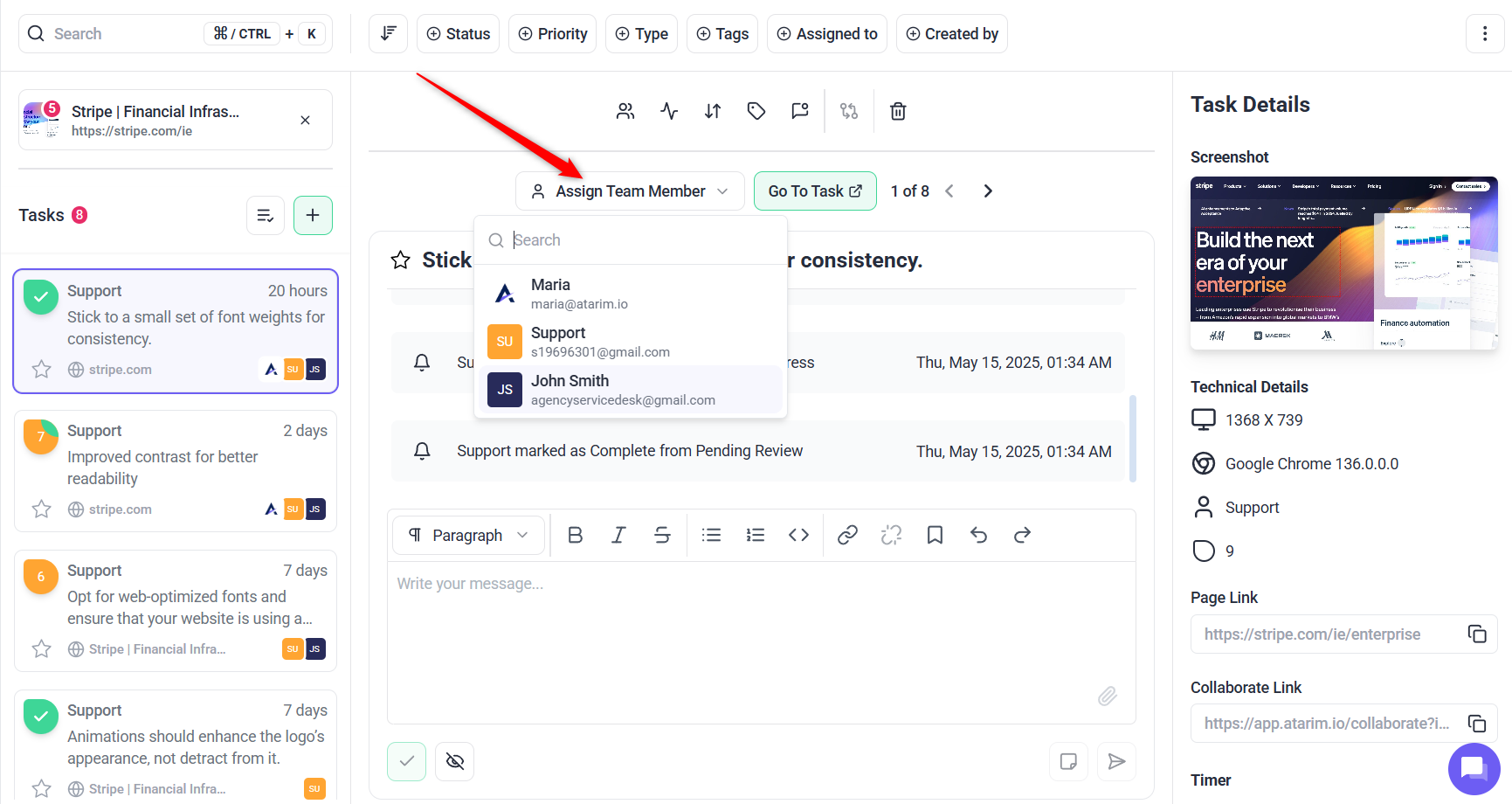 Streamline your workflow with Atarim’s robust task management tools.