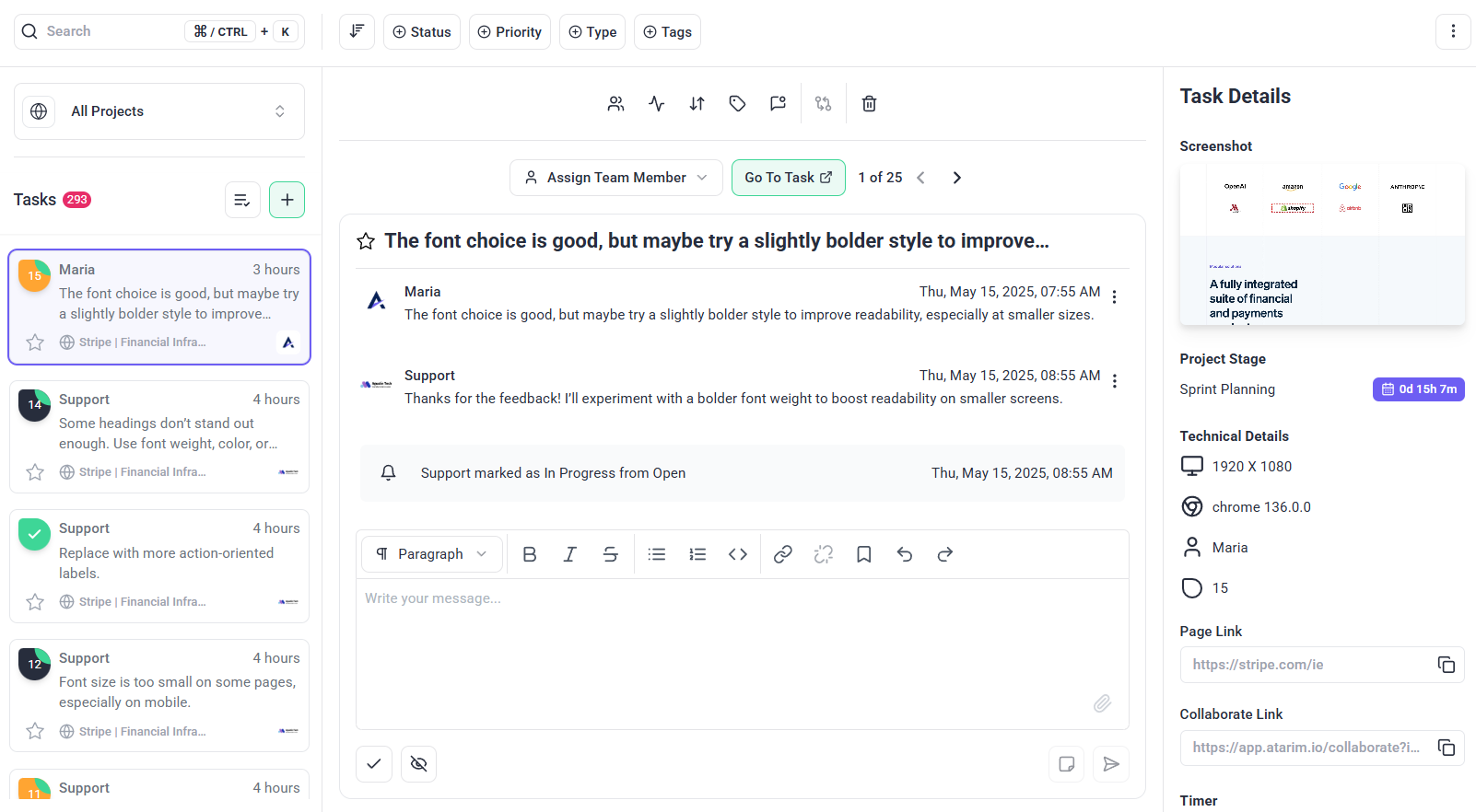 Atarim integrates with tools like JIRA, Slack, and ClickUp, ensuring seamless communication and task updates across platforms.