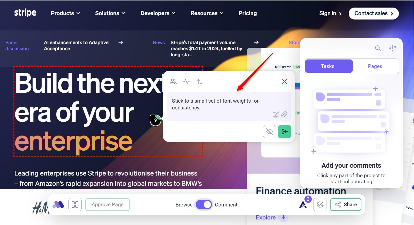 • Encourage clients and team members to use visual feedback tools to leave comments directly on designs or web pages.