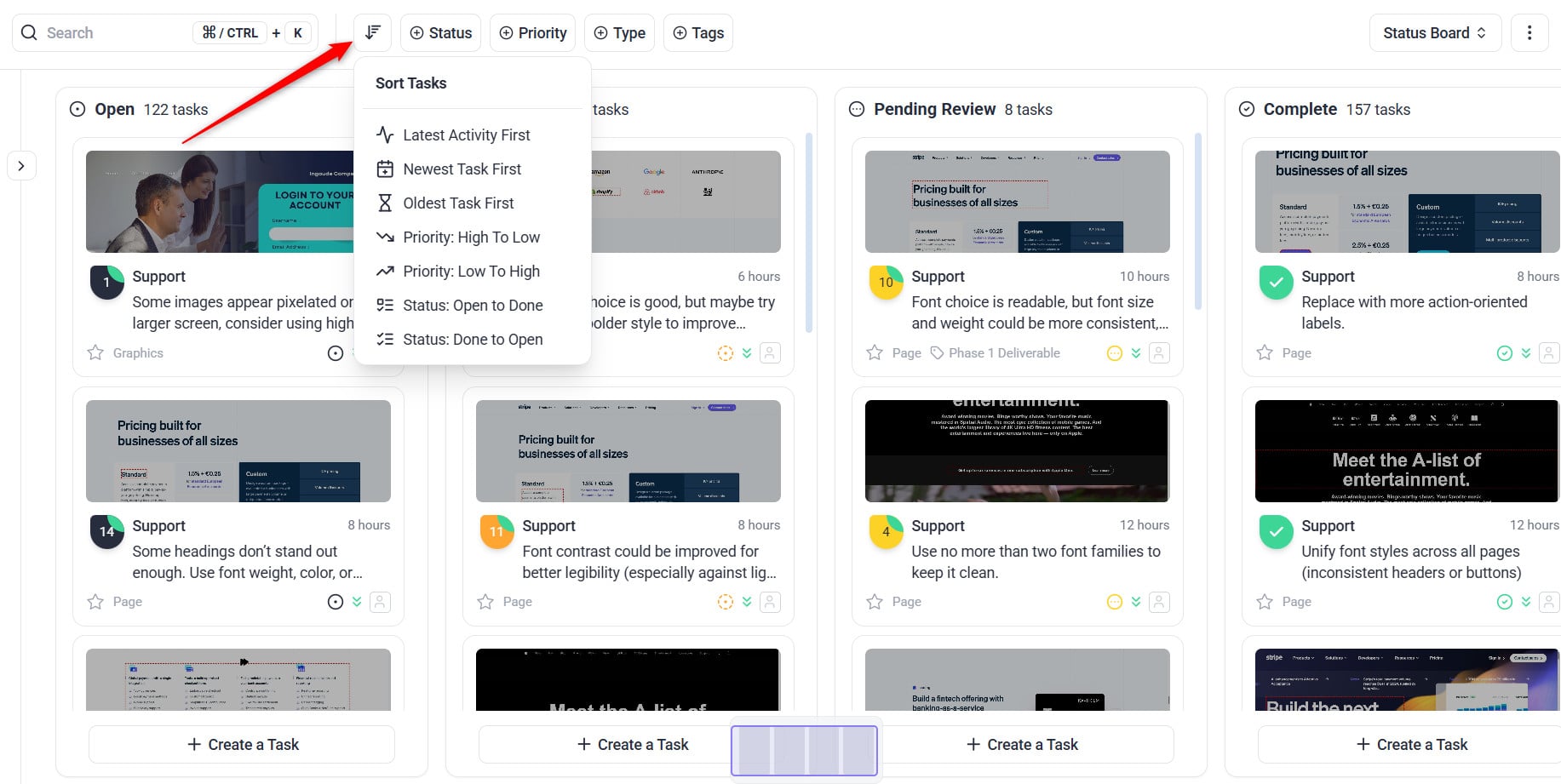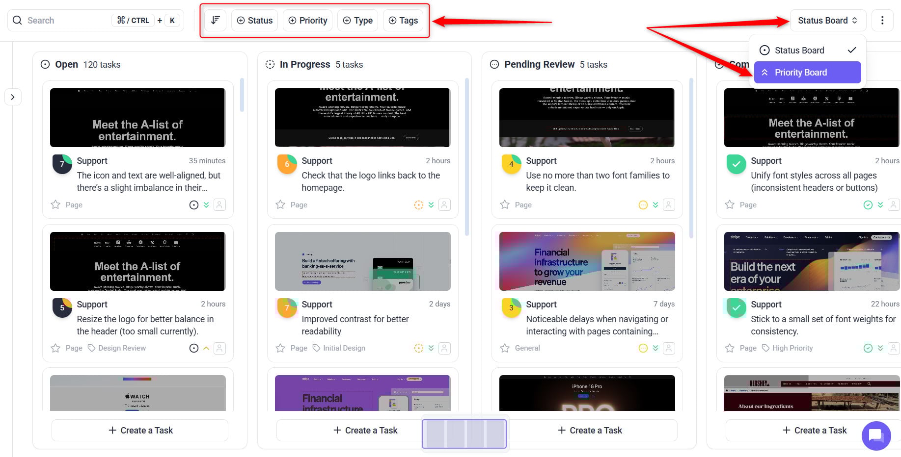 Task Tracking in Board View