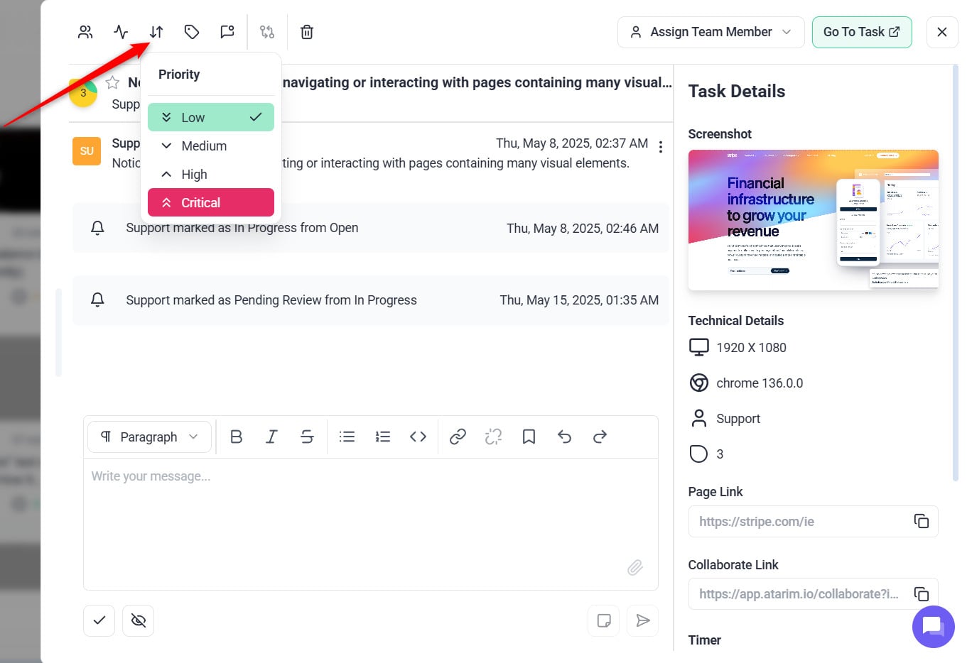 - Update priority level, and add any necessary details in the task description.