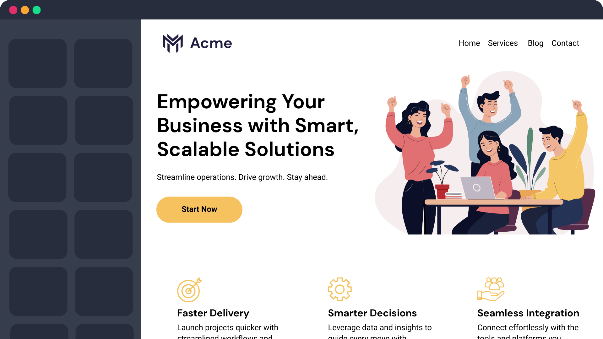 From scratch or refresh – launch polished business sites in days, not weeks.